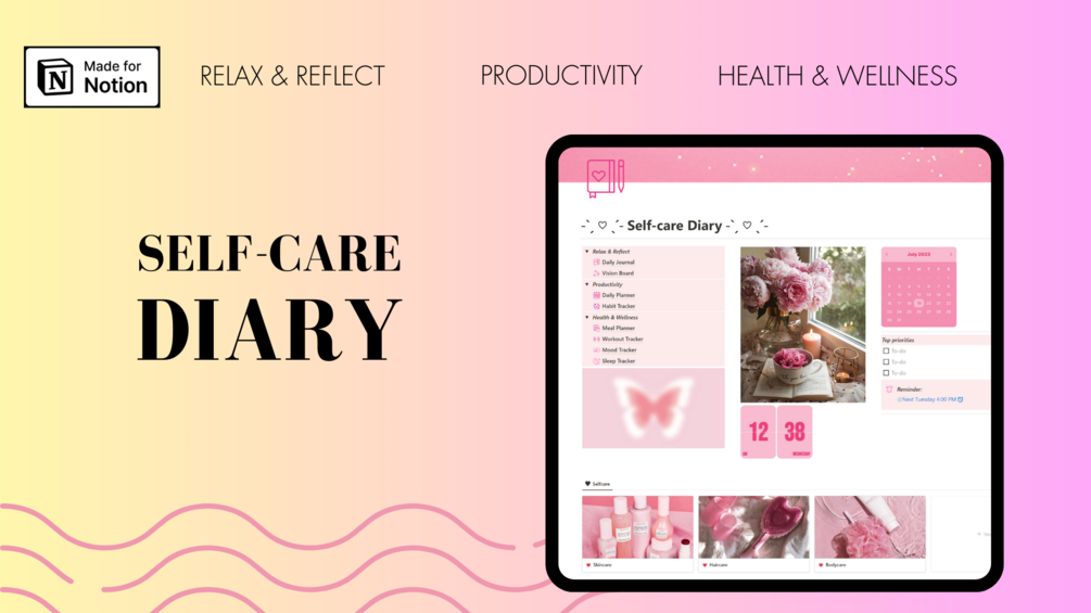 Self-care starts here – embrace the journey of self-love and growth with the comprehensive self-care diary template, tailored to empower you every step of the way 💗