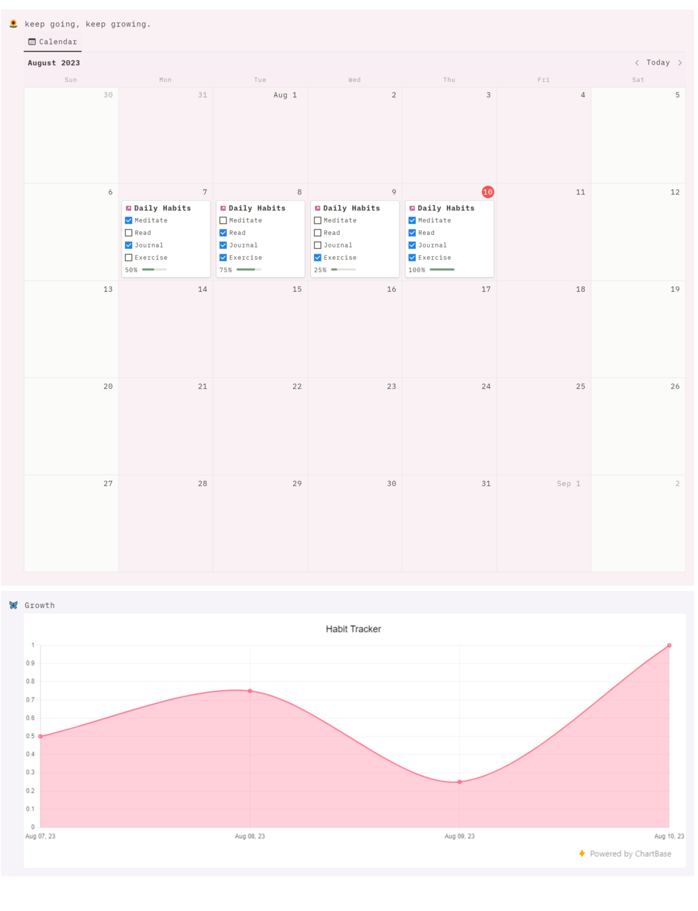You'll get an aesthetic habit tracker which includes a simple task manager and a line graph which visually reflects your progress with habit tracking.